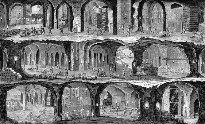 Жюль Роко. «Підземні робітники у соляній шахті у Величці, Галичина», ХІХ ст.
