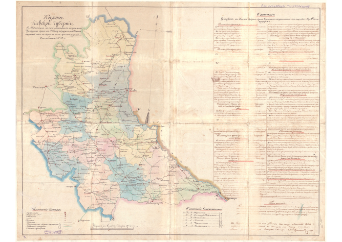 Карта Київської губернії з позначенням чумацьких доріг, які ведуть до Одеси, 1840