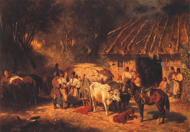Юзеф Брандт. «Чумаки на привалі перед корчмою», 1865