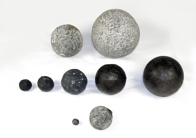 Різні види ядер, виготовлені з каменю, заліза та свинцю, XVI ст.