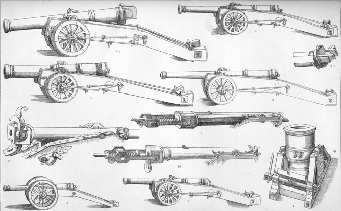 Тоді ж з’явилися перші професійні армії, а військове мистецтво вийшло на новий етап розвитку. Ще наприкінці XV століття зброярі навчилися відливати чавунні ядра, які поступово витісняли кам’яні. Гармати почали встановлювати на лафетах — спеціальних підставках. Незабаром хтось із винахідників прикріпив до них колеса — і це стало справжнім проривом. Тепер артилерію можна було швидко переміщувати полем бою і використовувати там, де найбільш потрібно.