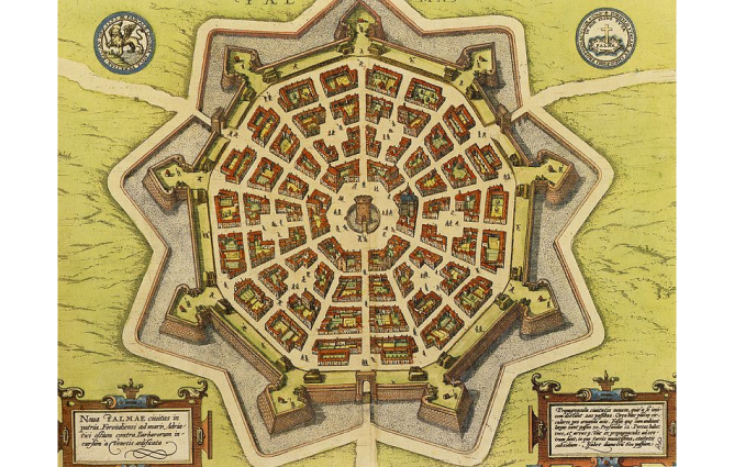 План італійського міста-фортеці Пальманова з виступаючими бастіонами, 1593