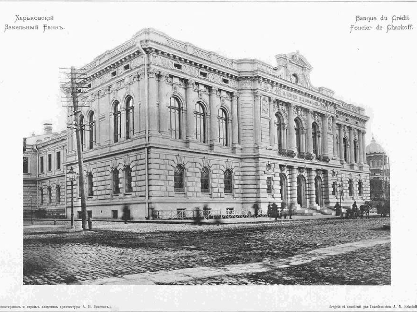 Будівля Харківського земельного банку (1898, архітектор Олексій Бекетов), поч. ХХ ст. Джерело: «Харків, що манить»