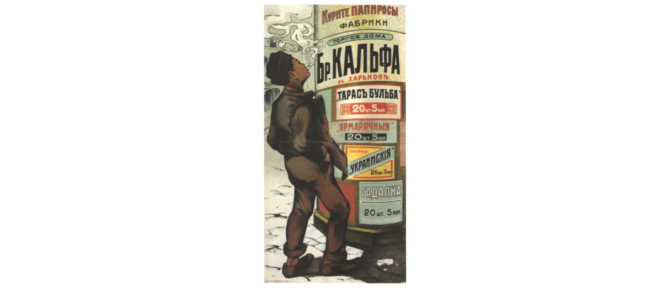 Рекламний постер «Паліть цигарки фабрики торгового дому Братів Кальфа у Харкові», 1900