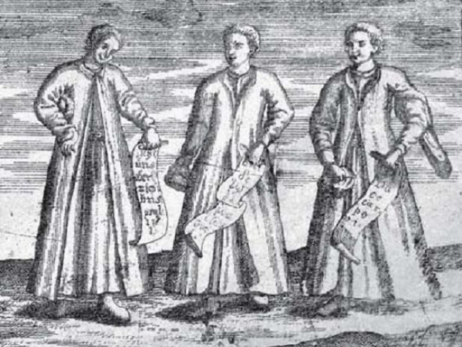 Григорій Левицький. Фрагмент «Тези на честь митрополита Рафаїла Заборовського» із зображенням студентів, 1739