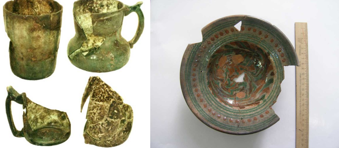 Стакан, скляний кухоль і миска. Полтава, XVIII ст.
