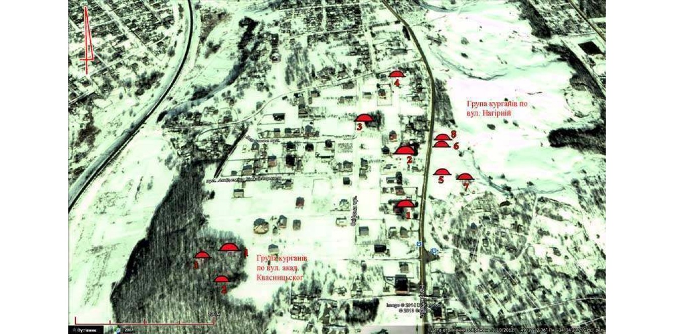 Групи курганів в Полтаві доби раннього залізного віку, вірогідно, скіфського часу (VII–IV ст. до н.е). Джерело: Полтавський краєзнавчий музей імені Василя Кричевського