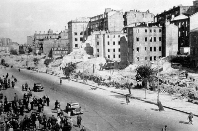 Після Другої світової війни Хрещатик лежав у руїнах, бо в 1941 році його було підірвано силами НКВС, хоча радянська пропаганда звинувачувала в цьому німців.