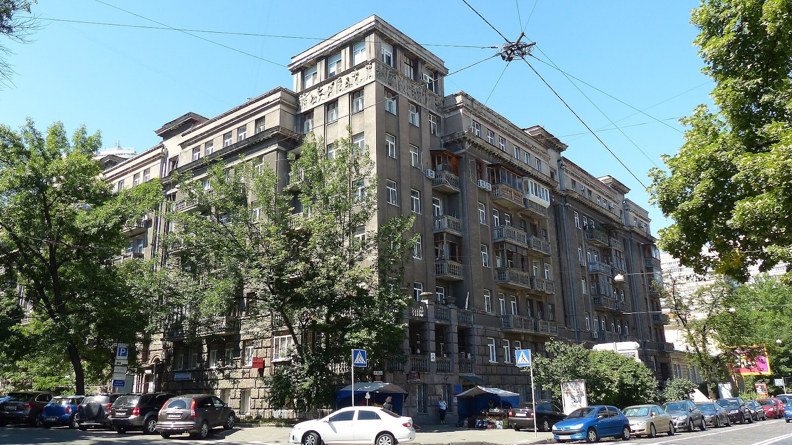 Фасад житлового будинку в Києві (1936, архітектор Георгій Шлаканьов), сучасний вигляд
