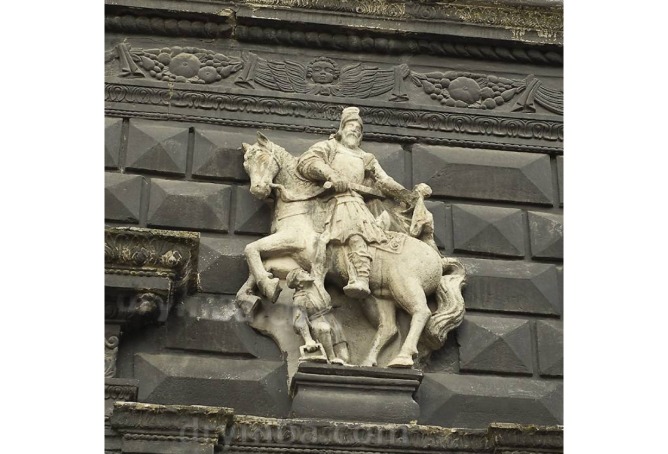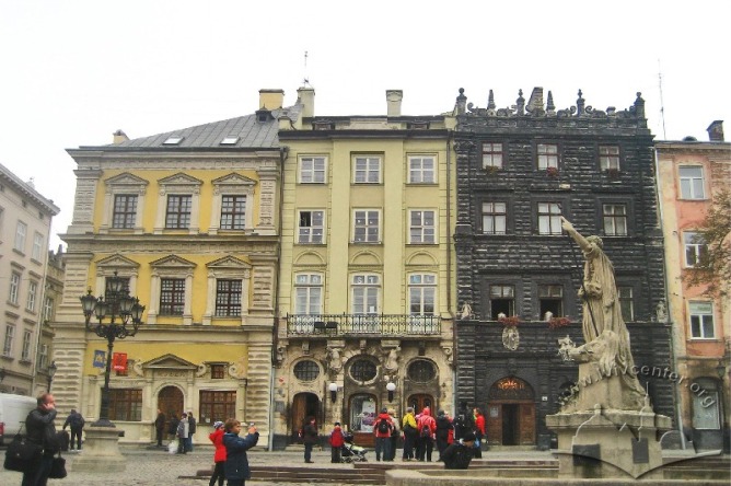 Фрагмент фасаду Чорної кам’яниці (1589, архітектори Петро Барбон, Павло Римлянин), сучасний вигляд