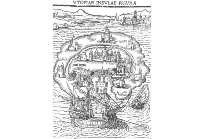 Титульна сторінка першого видання твору англійського письменника Томаса Мора «Утопія» (1516) про ідеальне суспільство