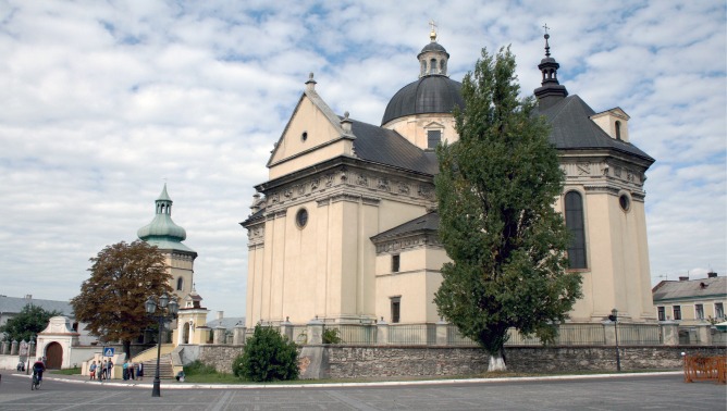 Але ось що цікаво: у жодному європейському ідеальному місті не знайдеш двох рівноцінних за масштабами «сердець». А в Жовкві — є. За квартал від костелу стоїть греко-католицька церква Серця Христового.