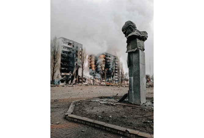 Зруйнований внаслідок російського обстрілу 2022 р. Ірпінський ліцей №3, Київська обл.