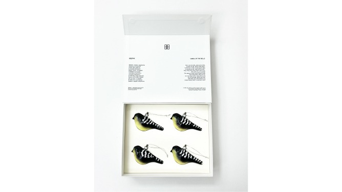 Цей стиль, уважний до сенсів і форм, простежується не лише в одязі та прикрасах, а й в інших візуальних атрибутах нашого життя. Наприклад, святкова капсульна колекція до Різдва отримала назву «Роса на сонці» — її символом стала птаха Щедрик. Ця ялинкова прикраса виконана вручну й натхненна, мабуть, найвідомішою українською колядкою — «Щедриком» Миколи Леонтовича, знаним у світі як Carol of the Bells.