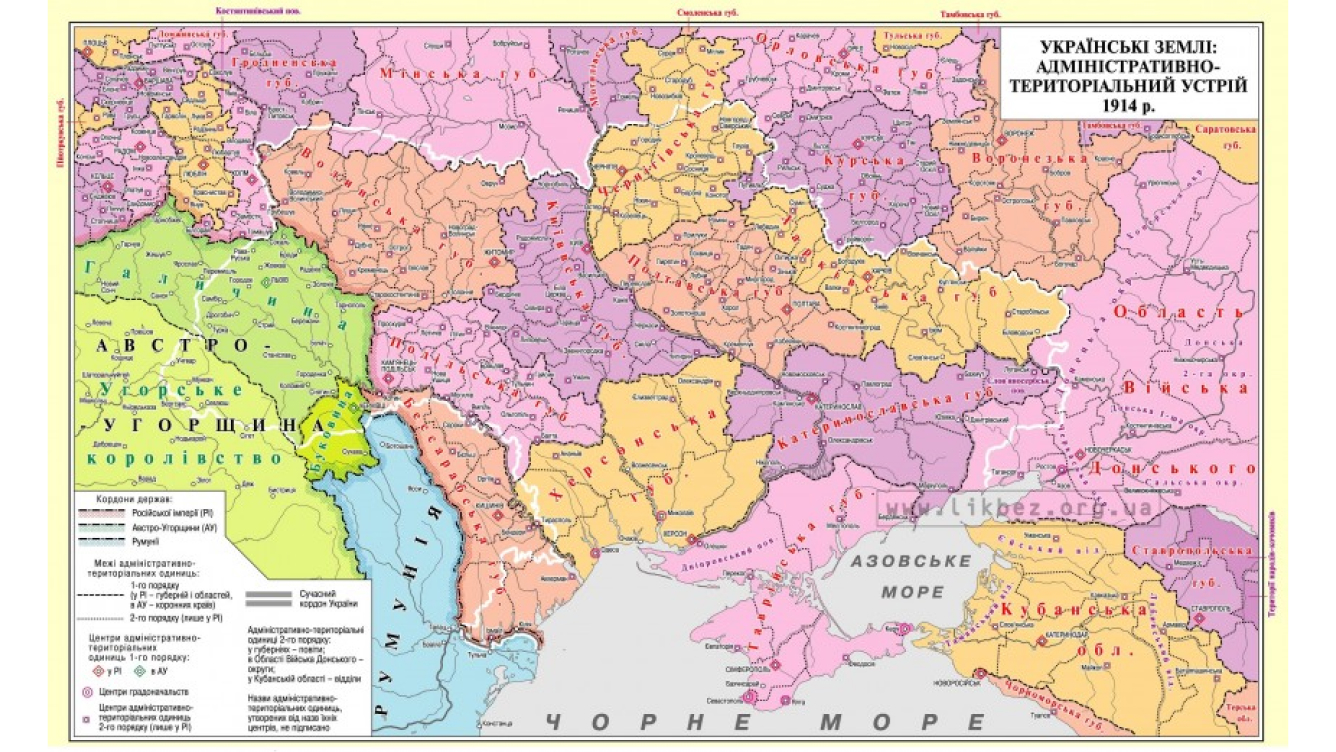 Адміністративно-територіальний устрій українських земель у складі Австро-Угорської та Російської імперій, 1914