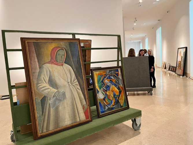 Виставка «В епіцентрі бурі: модернізм в Україні 1900-1930-х років», Мадрид, Іспанія, 2022. На передньому плані робота Василя Седляра «Портрет Оксани Павленко», 1926–1927