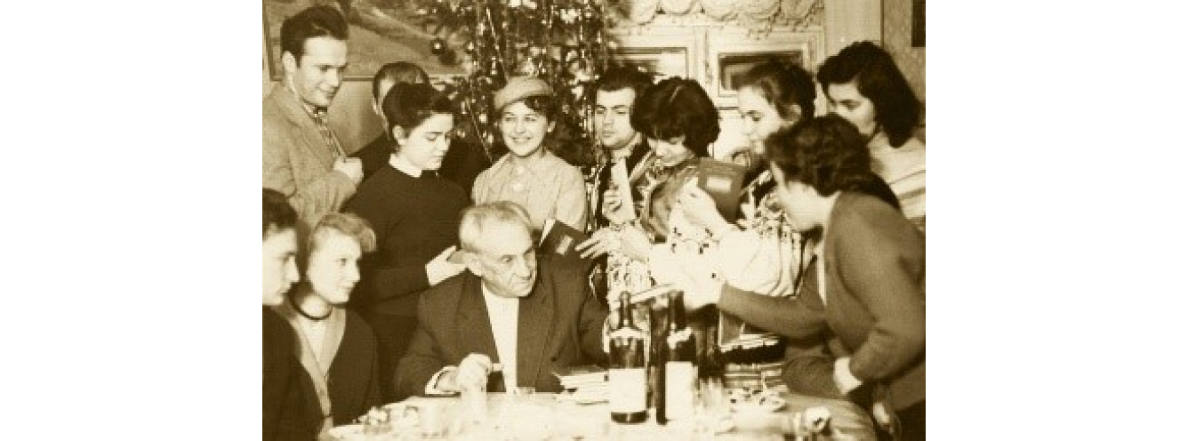 Колядники клубу творчої молоді в будинку Максима Рильського, зима 1959–1960. Фото з сімейного архіву Леся Танюка й Неллі Корнієнко