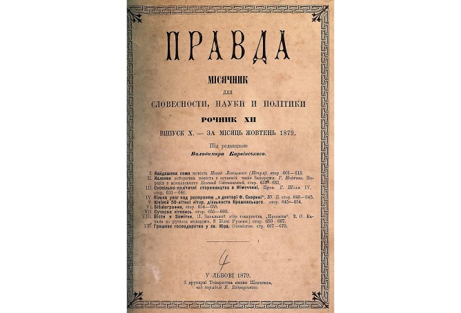 Титульна сторінка журналу «Правда», жовтень 1879