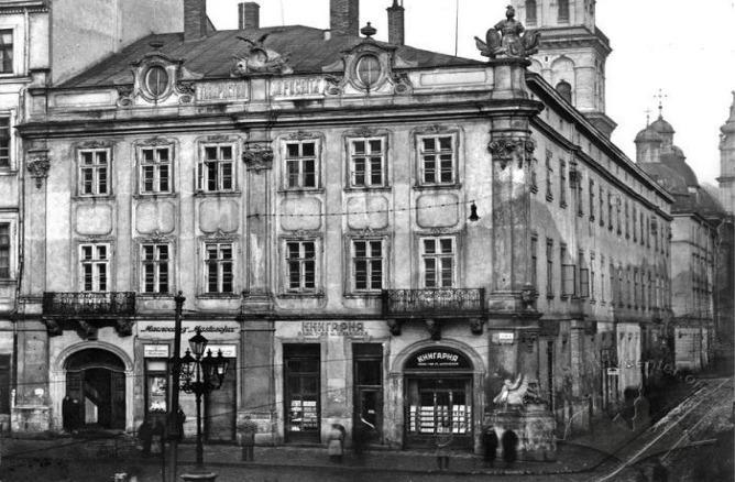 Будинок товариства «Просвіта» у Львові, зведений у XVII ст. (реконструйований у XVIIІ ст., архітектори Бернард Меретин, Ян де Вітте), 1938
