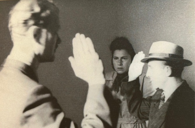 Омелян Антонович приймає присягу мігранта перед відʼїздом до США, 1949