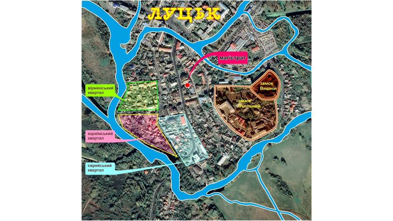 У добу пізнього Середньовіччя, окрім корінного населення, в Луцьку були три привілейовані етнічні групи: вірмени, євреї та караїми. У чому полягав привілей? Тільки ці три етнічні спільноти мали право компактно проживати у місті. Землі для поселення їм надали в межах острова, хоч і в його найбільш складних для життя сторонах — західній і південно-західній. Ці ділянки ще довго зберігали відповідні назви вулиць: Вірменська, Караїмська, Мала та Велика Жидовська.