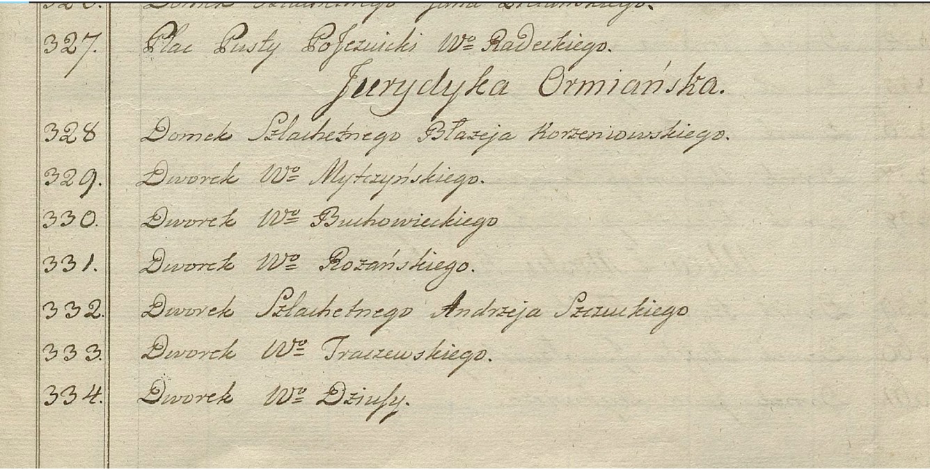 Перелік будинків на вул. Вірменській у Луцьку за Люстрацією 1789 р.